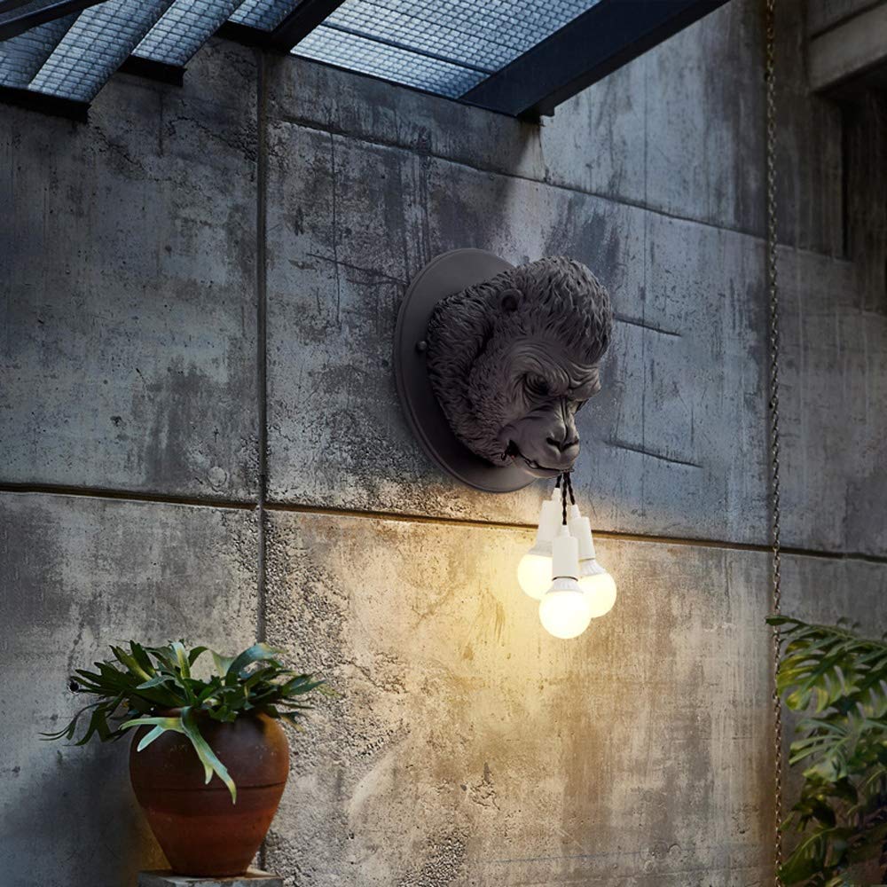 Amazon Com Sunny Lingt Resin Gorilla Ape Wall Lamps Light Modern Creative 3 Light Wall Light Fixtures Nordic Gray White Animal Wall Sconce For Home Decor Loft Industrial Bedroom Bedside Lamp Wall Art E27