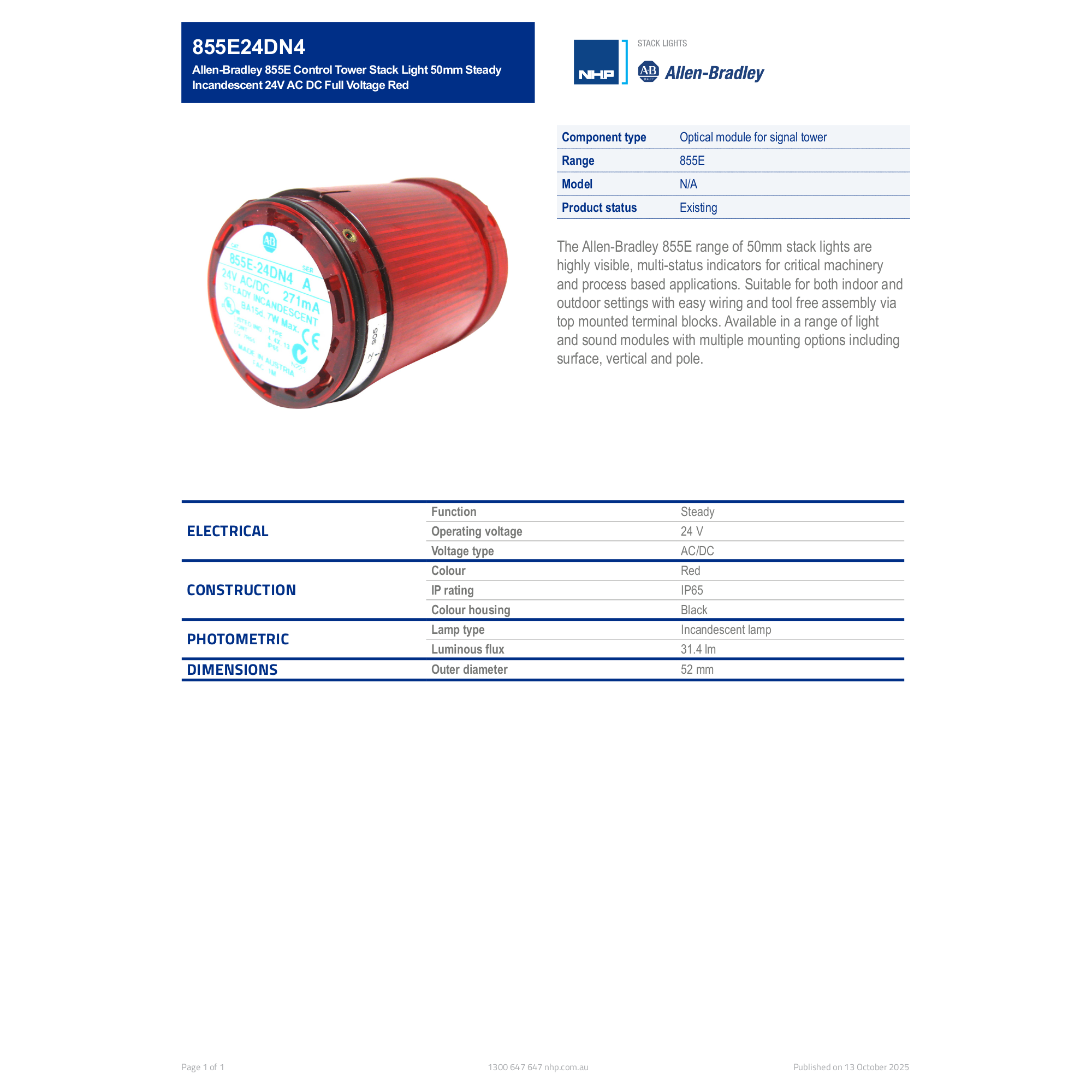 Bulletin 855E 50 mm Control TowerTM Lights. Start by identifying the main station and the light modules. The new Allen-Bradley 854J 40 mm and 854K 60 mm tower lights provide reliable high-performance machine multi-status indication in a cost.